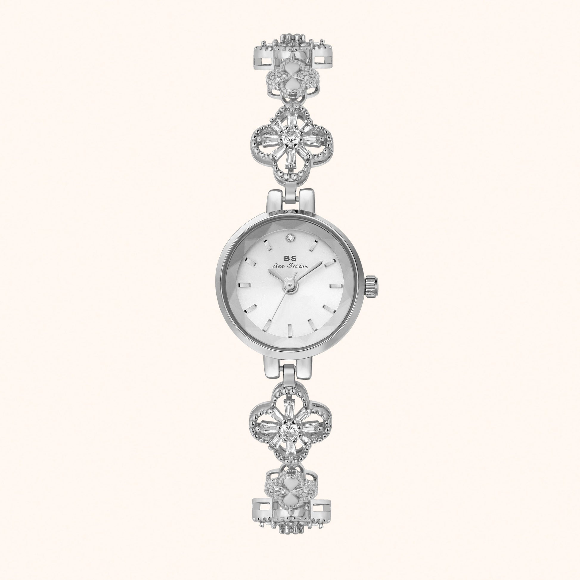 Silverfärgad blommig armbandsklocka
