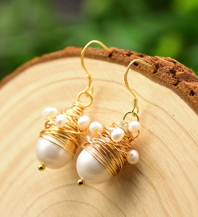 Vintage pärlörhängen med gyllene trådar